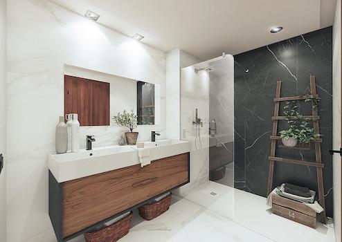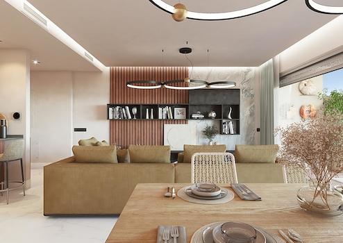 Dank des durchdachten Designs und der sorgfältig ausgewählten, hochwertigen Materialien und Marken bieten die Apartments ihren Eigentümern höchsten Komfort. Sie verfügen über optimale Dämmung der Zwischen- und Außenwände sowie eine leistungsstarke Klimaanlage und Wärmepumpe, die ganzjährig für ein angenehmes Raumklima sorgt.