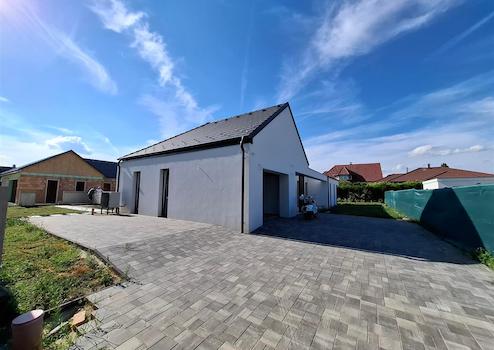 Das Haus ist ein Neubau mit allen Anschlüssen und befindet sich in einer ruhigen, neu angelegten und asphaltierten Straße auf einem 1005 m² großen, umzäunten Grundstück. Das Haus ist über eine eigene Zufahrt erreichbar.