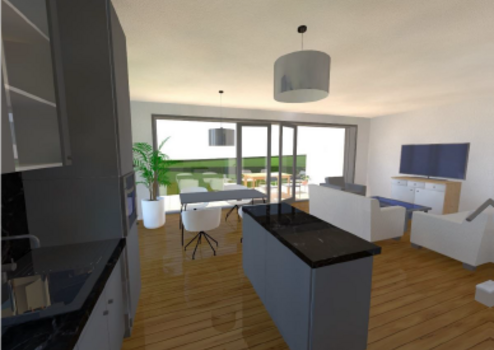 - Decken- und Fußbodenheizung, Deckenkühlung, mit raumweiser Temperaturregelung, die auch über ein Mobiltelefon gesteuert werden kann.
