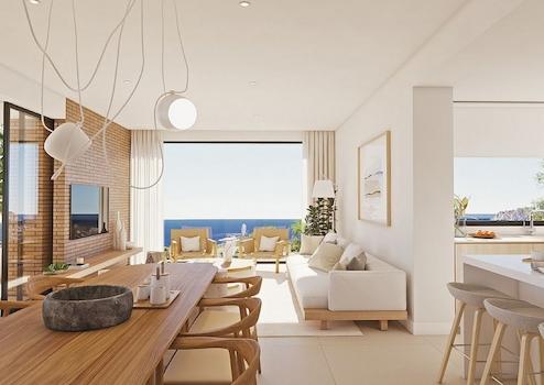 In der Wohnsiedlung Magnolias in Cumbre del Sol befindet sich die Villa Aqua, die sich durch eine Architektur auszeichnet, die den Blick nach außen auf das blaue Mittelmeer richtet und zum Teilen und Feiern konzipiert wurde.