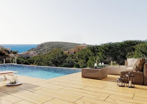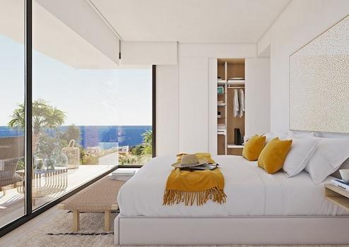 Das Obergeschoss beherbergt das gesamte Haus, was für zusätzlichen Komfort sorgt. Der Nachtbereich besteht aus drei Schlafzimmern mit eigenem Bad, die in natürliches Licht getaucht sind und ein hohes Maß an Privatsphäre gegenüber den Tagesbereichen bewahren. Das Wohnzimmer, das Esszimmer und die Küche sind mit dem Außenbereich verbunden, dank der Verwendung von Glaswänden, die eine ständige Sichtverbindung zum Meer ermöglichen. Die mehr als 70 m² große Terrasse wird von einem Infinity-Pool dominiert. Das Haus wird durch einen Mehrzweckkeller mit zwei Veranden und einer Garage vervollständigt.
