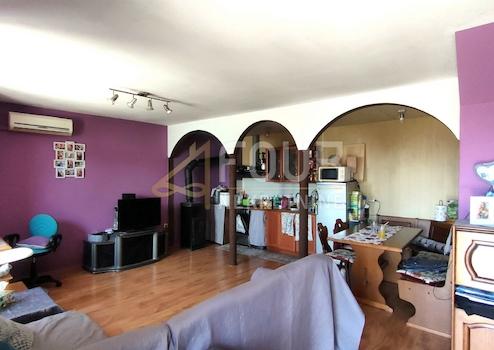 Das Erdgeschoss umfasst eine 75 m² große Wohnung, die als 1 Schlafzimmer + Wohnzimmer fungiert, mit einer zusätzlichen geschlossenen Terrasse und einem Teil einer offenen Terrasse.