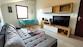 Wohnfläche 45 m2, bestehend aus Badezimmer, Schlafzimmer, Waschküche, Küche mit Wohnzimmer.