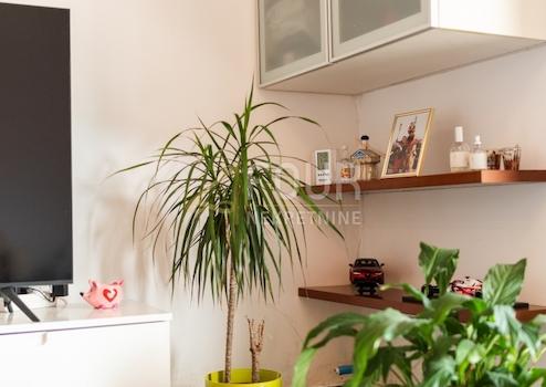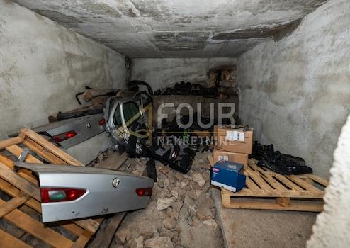 Im Erdgeschoss befindet sich eine Wohnung, die ein Schlafzimmer, eine Küche, ein Esszimmer, ein Wohnzimmer, ein Badezimmer sowie eine Loggia und einen Balkon mit Blick auf das Meer umfasst. Zu dieser Wohnung gehört eine große Garage.