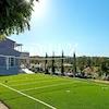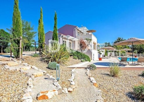 Der weitläufige Garten ist voller Grün und mediterraner Pflanzen und die perfekte Harmonie wird durch zusätzliche Einrichtungen wie einen 48 m² großen beheizten Swimmingpool mit Liegewiese, einer Massagewanne und einem Badmintonplatz abgerundet.