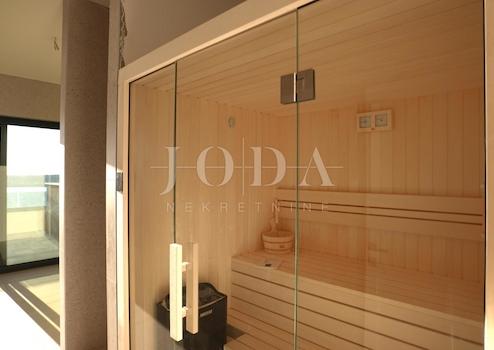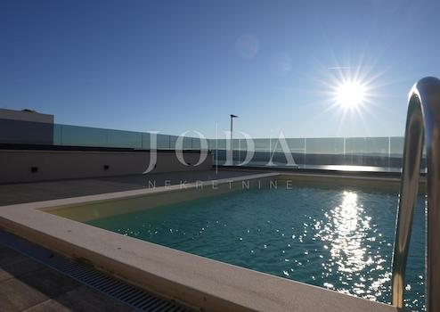 Das Konzept einer zweistöckigen Wohnung mit einem großen Infinity-Pool vor dem Haus und einem Garten auf der Rückseite sorgt für Intimität und einen Hauch von Luxus.