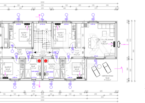 Penthouse zum Verkauf in einem neuen Gebäude in Privlaka, nur 140 Meter vom Strand entfernt. Diese Wohnung bietet Ruhe und Privatsphäre, ideal zum Entspannen und Genießen. Die Wohnfläche beträgt 92,15 m2, zusätzlich besticht sie durch eine großzügige Dachterrasse von 83 m2 mit Blick auf das Meer. Die Terrasse ist mit Whirlpool-Anschlüssen, einem eingebauten Grill und einem Außenbecken mit heißem und kaltem Wasser ausgestattet. Zwei Parkplätze sind im Preis inbegriffen. Das Penthouse verfügt über zwei Schlafzimmer, ein geräumiges Wohnzimmer und ein modernes Badezimmer. Das Gebäude wurde mit hohen Dämmstandards mit 10 cm Styropor gebaut. Die Eingangstür des Gebäudes besteht aus anthrazitfarbenem Aluminium und verfügt über ein elektrisches Schloss und eine Video-Gegensprechanlage. Der Eingang und das Treppenhaus sind mit erstklassigen Keramikfliesen gepflastert und mit einem INOX-Zaun versehen. Flure und Treppenhäuser sind zur Sicherheit der Mieter mit Feuerlöschgeräten ausgestattet. Die Eingangstüren zu den Wohnungen sind einbruchhemmend und feuerfest. Das Penthouse ist mit modernen Technologien mit Internet- und Satellitenanschlüssen im Wohnzimmer und in den Schlafzimmern ausgestattet. Die Böden in Küche, Wohnzimmer und Terrasse sind mit erstklassigen Keramikfliesen belegt, während die Schlafzimmer mit SPC-Bodenbelägen ausgestattet sind. Die PVC-Zimmerei ist außen anthrazitfarben und innen weiß, mit Dreikammerglas und elektrischen Jalousien an allen Fenstern und Schiebewänden, mit eingebauten Moskitonetzen. Die Räume werden über eine Vaillant-Klimaanlage beheizt und gekühlt, während die Badezimmer mit einer elektrischen Fußbodenheizung ausgestattet sind. Die Badezimmer sind mit modernen Möbeln, Doppelwaschbecken, hängenden Toilettenschüsseln, eingebautem Spülkasten und begehbarer Glaswand ausgestattet. In allen Räumen wurde LED-Beleuchtung installiert und die Balkone verfügen über kombinierte Ziegel- und Glasgeländer. Die Wohnungen werden unmöbliert verkauft und verfügen über voll ausgestattete Badezimmer. Der Abschluss der Bauarbeiten ist für den 1. Juni 2024 geplant, gefolgt von einer technischen Abnahme und einem Grundriss des Gebäudes. Diese Immobilie stellt eine ideale Gelegenheit für alle dar, die ein modernes und hochwertiges Zuhause in der Nähe des Meeres suchen. Kontaktieren Sie uns gerne für weitere Informationen oder um einen Besichtigungstermin für dieses schöne Penthouse zu vereinbaren.