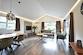 Das geräumige Wohnzimmer strahlt durch den geschickten Einsatz von Beleuchtung und stilvollem Mobiliar eine moderne und dennoch gemütliche Atmosphäre aus. Die Decke ist hoch und verfügt über eingebaute Spots, die zusammen mit der Umgebungsbeleuchtung an den Rändern einen hellen und einladenden Effekt erzeugen. Die großen Fenster lassen viel natürliches Licht herein, wodurch der Raum noch großzügiger wirkt.