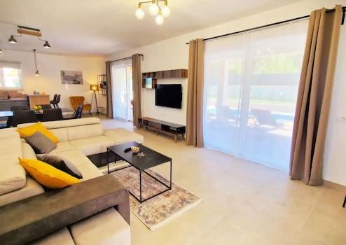 Die malerische, charmante Stadt Rovinj an der Westküste der Halbinsel Istrien war einst ein Hafen und ein Fischerdorf und ist heute mit ihrer einzigartigen Kombination aus Tradition und Moderne eines der am weitesten entwickelten Touristenziele. Es verbindet erfolgreich die Tradition eines Fischerdorfes mit modernen touristischen Trends, einem reichhaltigen gastronomischen Angebot und einem hohen Standard an touristischen Dienstleistungen. Gerade deshalb zieht es Jahr für Jahr viele Besucher an und verzeichnete in den letzten Saisons einen Rekordwert von 3 Millionen Übernachtungen. Besucher kehren oft dorthin zurück. Warum also nicht Eigentümer eines der wertvollsten Anwesen dieser magischen Stadt werden? Dieses charmante, neu erbaute einstöckige Haus liegt nur 7 Kilometer von Rovinj und seinen magischen Straßen und Stränden entfernt. Durch den Kauf dieses schönen Hauses erhalten Sie 127,21 m2 Wohnfläche, aufgeteilt auf Erdgeschoss und Obergeschoss. Das Erdgeschoss von 86,10 m2 besteht aus einem überdachten Eingang, einem Badezimmer, einer Eingangshalle, einem geräumigen Raum, der Wohnzimmer, Küche und Esszimmer vereint, und einer kleinen Speisekammer (Lagerung). Eine Innentreppe führt in den ersten Stock von 41,11 m2, der aus einer Eingangshalle und zwei Schlafzimmern mit jeweils eigenem Bad besteht. Vom Wohnzimmer aus gelangen wir in einen schön angelegten Garten mit einem großen, 8,5 Meter langen Swimmingpool, neben dem sich auch eine Sommerküche mit Kamin befindet, die zum Genießen mit Familie und Freunden einlädt. Neben dem Haus gibt es mehrere Parkplätze für Ihre Haustiere. Das Haus ist komplett eingezäunt und liegt am Rande des Dorfes und bietet so den zukünftigen Eigentümern Privatsphäre und Ruhe. Heizen und Kühlen durch Klimaanlage. Diese ideale Immobilie wurde für das Leben einer jungen Familie, aber auch für die touristische Vermietung geschaffen!