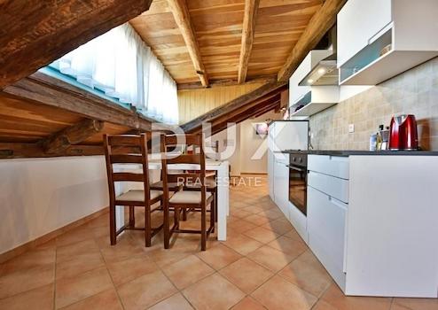 Die Stadt Poreč liegt an der Westküste Istriens und wurde in ihrer heutigen Form vor zwei Jahrtausenden von den alten Römern gegründet. Aufgrund seiner günstigen geografischen Lage und seiner natürlichen und kulturellen Schönheit ist Poreč eines der stärksten Touristenzentren in Kroatien. Der wichtigste Wirtschaftszweig ist der Tourismus, mit dem Handel, Baugewerbe und Landwirtschaft positiv korrelieren. Das bedeutendste Kulturdenkmal stammt aus byzantinischer Zeit, die Euphrasius-Basilika mit Bischofssitz aus dem 6. Jahrhundert. Die Straßen von Poreč sind mit Spuren großer Kulturen aus der Antike, der Romanik und der Gotik gepflastert. Natürlich zeichnet sich Poreč durch wunderschöne Strände und kristallklares Meer aus. In ruhiger Lage in der Nähe von Poreč steht im zweiten Stock, im Dachgeschoss des Gebäudes, eine Wohnung zum Verkauf. Die Wohnung befindet sich in einem kleineren Gebäude und besteht aus einem Wohnzimmer, einer Küche mit Esszimmer, zwei Schlafzimmern und einem Badezimmer. Die Terrasse, die in den Sommermonaten genossen werden kann, ist über 20 m2 groß und bietet einen Blick ins Grüne und auf das Meer. Der Parkplatz befindet sich vor dem Gebäude. Den Mietern steht das ganze Jahr über der Tennisplatz und in den Sommermonaten das Schwimmbad zur Verfügung. Das Gebäude ist ordentlich und gepflegt. Die Wohnung lässt sich in den Sommermonaten gut vermieten und ist somit eine investitionsfreie Mietmöglichkeit, aber auch eine schöne, komfortable Wohnung zum Wohnen.