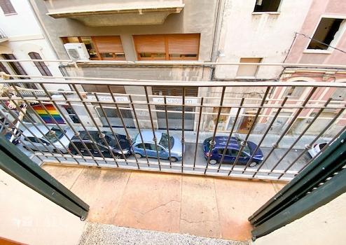 Der Balkon bietet Platz für eine kleine Sitzgelegenheit und ist ein perfekter Ort, um die Sonne und das Leben in der Nachbarschaft zu genießen.
