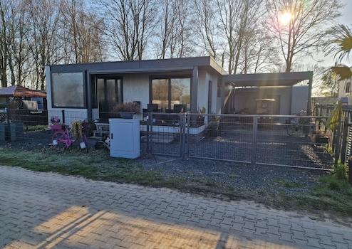Wir verkaufen unser in unserem eigenen Unternehmen gebautes Chalet mit sehr hochwertigem Material, Wänden, 15 cm Boden und Dach 20 cm, Schiebetüren und Dreh-Kipp-Verglasung mit sonnenbeständiger Dreifachverglasung nach europäischen Standards Fußbodenheizung im gesamten Chalet, Luxusküche mit Geschirrspüler, Kühl-Gefrierkombination, Mikrowelle, Backofen geräumige Dusche, 2 geräumige Schlafzimmer, separate Toilette mit Waschbecken, separater Waschmaschinen- und Trocknerraum Klima, 2x16 Ampere, Chalet mit Blick auf das Wasser, auf dem Campingplatz gibt es 3 Badeseen, mögliche Übernahme der Einrichtung mit Doppel-Auping-Bett, Möbel, evtl. Golfwagen mit Nummernschild, auf öffentlichen Straßen nutzbar, großes Vordach mit zu öffnende Lamellen, große Sichtschutzwände, geräumiger Schuppen, für weitere Informationen können Sie uns gerne für weitere Fotos kontaktieren