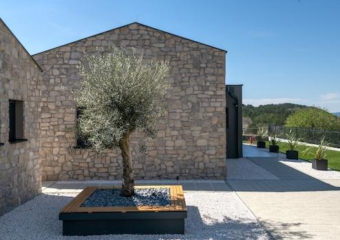 Hum ist ein Dorf in Zentralistrien mit nur etwa 30 Einwohnern. Sie gilt als die kleinste Stadt der Welt. Es besteht aus Stadtmauern, zwei Straßen und drei Häuserzeilen. Heute gilt sie als Gedenkstadt, da sie eines der wenigen erhaltenen Beispiele städtischer Entwicklung innerhalb der Stadtmauern ist. Der Legende nach entstand Hum, als Riesen auf Hügeln im Tal des Flusses Mirna Städte wie Motovun, Roč und Bale errichteten und aus den restlichen Steinen schließlich Hum bauten. Sie ist nicht nur als die kleinste Stadt der Welt bekannt, sondern auch als Stadt des Bisca, des Brandys mit Mistel, dessen Rezept angeblich aus Hum stammt. Genau aus diesem Grund findet jedes Jahr Ende Oktober in Hum die Smotra Rakija statt. In einem ruhigen und malerischen Teil Istriens, nicht weit von der kleinsten Stadt der Welt, Hum, entfernt, befindet sich dieses wundervolle Haus aus dem Jahr 2022. Mit seinem durchdachten Design und der hochwertigen Verarbeitung bietet diese Immobilie alles, was Sie für ein luxuriöses und entspanntes Leben in Abgeschiedenheit benötigen. Die Villa hat eine Gesamtfläche von 126,3 m2 und liegt in einem wunderschönen Garten mit einer Gesamtfläche von 1755 m2. Die Villa besteht aus einer Eingangshalle, einer Waschküche/Speisekammer, einer Gästetoilette, zwei Schlafzimmern mit eigenem Bad, eines davon mit separater ebenerdiger Dusche und separater Toilette, einer Küche und einem geräumigen Wohnzimmer mit offenem Konzept-Esszimmer und direkter Zugang zu einer überdachten Terrasse und einem Garten mit Swimmingpool und Sommerküche, der sich ideal zum Bewirten und Entspannen mit Freunden und Familie eignet. Alle Zimmer sind komfortabel und klimatisiert. Die Heizung und Kühlung erfolgt über Klimaanlagen, die in allen Räumen installiert sind. Im Wohnzimmer gibt es außerdem einen Kamin, der als zusätzliche Heizquelle dienen kann und zu einer Atmosphäre von Komfort und Luxus beiträgt. Das Haus ist gut möbliert und ausgestattet und wird als solches verkauft. Der Hinterhof ist groß und bezaubernd und bietet Ihnen Platz zum Entspannen und zur Erholung im Freien. Einer der vielen Vorteile ist sicherlich das maximale Maß an Privatsphäre und Ruhe, das die Lage der Villa selbst bietet. Die Villa liegt außerhalb des Dorfes, in abgeschiedener und ruhiger Lage. Somit stellen diese Villen eine ideale Option für alle dar, die ihre eigene Oase der Ruhe ohne Nachbarn in der Nähe, abseits von Lärm, Menschenmassen und Ausblicken suchen. Im Garten befindet sich ein wunderschöner Swimmingpool mit einer Gesamtfläche von 34,8 m2, von dem aus man einen bezaubernden Blick auf den Olivenhain und die Natur hat. Der Boden des Beckens besteht aus Keramik, es wurden Vorbereitungen für die Beckenheizung getroffen und es ist mit einem Elektrolysesystem ausgestattet. Neben dem Pool befindet sich ein hochwertiger Whirlpool. Neben dem Pool befindet sich ein Nebengebäude – eine überdachte Sommerküche, ausgestattet mit Esstisch, Küche, Kamin, Toilette, Speisekammer und Sauna, was es zu einer Sommerküche macht, die alles bietet, was Sie für einen perfekten Urlaub oder ein perfektes Leben brauchen. Die Außenterrasse wurde sorgfältig gestaltet, um einen idealen Ort zum Genießen der frischen Luft zu bieten. Gleichzeitig ist sie überdacht, sodass Sie sich vor dem Wetter schützen können. Diese Villa bietet Ihnen auch den Komfort und die Flexibilität des Parkens mit der Möglichkeit, zwei Fahrzeuge auf dem überdachten Parkplatz unterzubringen. ZUSÄTZLICHE INFORMATIONEN: * Die Villa wird komplett möbliert verkauft, wie auf den Bildern zu sehen ist. * Das Eigentum an der Villa ist in Ordnung, der Eigentümer ist 1/1 und die Villa verfügt über alle Unterlagen. * In jedem Zimmer wurden Klimaanlagen mit Heiz- und Kühlmöglichkeit und im Wohnzimmer ein Kamin installiert. * In allen Räumen wurde Keramik als Bodenbelag verwendet. * Für die Beleuchtung der Villa werden moderne Lösungen verwendet, die das innere und äußere Erscheinungsbild der Villa ergänzen. * Die Villa verfügt über einen Swimmingpool mit Elektrolysesystem, Keramikauskleidung und Heizungsvorbereitung. * Die Zimmerei besteht aus PVC und die große Schiebewand besteht aus Aluminium. * Die Villa wurde von einem zuverlässigen Bauunternehmer in hochwertiger Fertigbauweise gebaut. * Ladegerät für Elektrofahrzeuge mit einer Leistung von 11 kW, das ein einfaches Laden Ihres Elektroautos ermöglicht. * Die Villa hat eine Gesamtnettofläche von 99,3 m2 und mit einem Nebengebäude von 27 m2 beträgt die Gesamtfläche 126,3 m2. Trotz der Abgeschiedenheit der Villa ist sie dennoch in der Nähe und bietet künftigen Eigentümern alles, was sie zum täglichen Leben benötigen. Somit sind alle Einrichtungen wie Geschäfte, Restaurants, Schulen und dergleichen nur wenige Minuten von dieser Villa entfernt. Nur 40 Autominuten von der Villa entfernt haben Sie die Möglichkeit, an wunderschönen Stränden im frischen Meer zu schwimmen. Alle Strände bieten ihren Besuchern neben dem kristallklaren Meer zahlreiche zusätzliche Aktivitäten, wie Restaurants am Meer, Strandbars, verschiedene Sportplätze, grüne Wiesen ideal für Picknicks, zahlreiche Aktivitäten und Sportarten auf dem Meer, Bootsverleihmöglichkeiten, Boot Anlegemöglichkeiten usw. ähnlich. Die Restaurants rund um die Villa sind nur wenige Minuten von der Villa entfernt und Sie haben die Möglichkeit, eines der berühmtesten traditionellen istrischen Gerichte und einen der berühmtesten istrischen Weine, Olivenöle und mehr zu probieren. Dieses unglaubliche Haus in Istrien ist perfekt für diejenigen, die Ruhe, Luxus und Privatsphäre suchen, aber auch in der Nähe der kulturellen und historischen Sehenswürdigkeiten, die das schöne Istrien zu bieten hat.