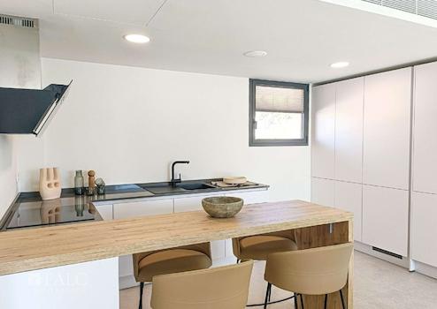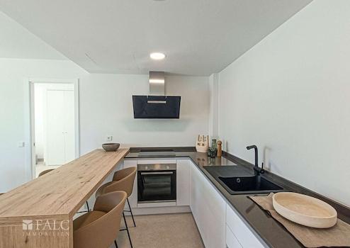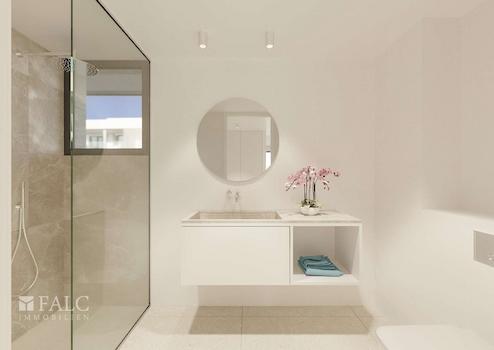 Die Wohnungen haben eine voll ausgestattete Küche, 2 Bäder (1 en suite), Klimaanlage (warm und kalt), Fußbodenheizung in den Bädern.