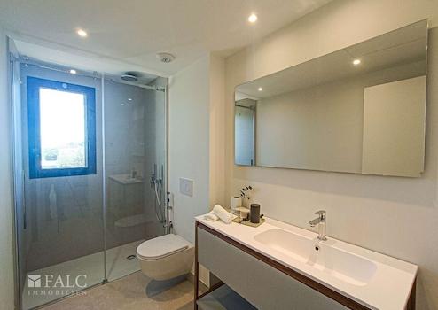 Die Badezimmer (eines mit Badewanne) verfügen über eine Arbeitsplatte aus Marmor sowie hochwertige, große Armaturen.