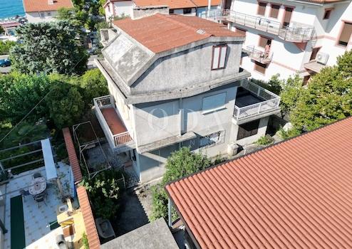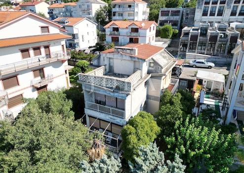 In einer attraktiven Lage in Crikvenica, nahe dem Meer und der Promenade, steht ein geräumiges Haus mit einer Nettofläche von über 240 m² zum Verkauf. Das Haus, das sich in der zweiten Reihe vom Meer befindet, liegt auf einem 437 m² großen Grundstück und besteht aus einem Keller, Erdgeschoss, erstem und zweitem Stock. Im Keller befindet sich eine Sommerküche mit Terrasse. Das Erdgeschoss, mit zwei Eingängen, umfasst ein Wohnzimmer mit Kamin, ein Hauptbadezimmer, einen Abstellraum, eine Küche, ein Schlafzimmer mit zusätzlichem Badezimmer, zwei Vorräume und eine Terrasse. Im ersten Stock befinden sich drei Schlafzimmer, eines mit Meerblick-Terrasse, das zweite mit kleinem Balkon und das dritte mit Balkon, sowie ein gemeinsames Badezimmer. Der zweite Stock, ein erhöhtes Dachgeschoss, umfasst ein kleines Schlafzimmer, einen großen halb-offenen Raum, der als Schlafzimmer, Wohnzimmer und Küche genutzt werden kann, und eine große Terrasse mit herrlichem Meerblick. Das Grundstück ist komplett eingezäunt und bietet Parkplätze für vier Autos im Hof.
