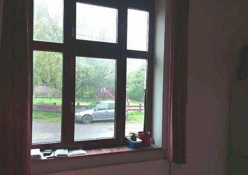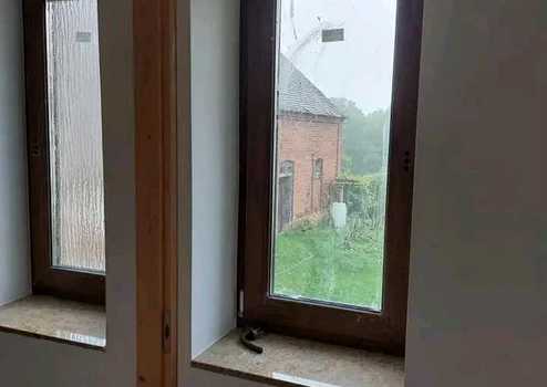 Im Einfamilienhaus wurden das Dach und neue Fenster eingebaut. Beheizt wird es mit einem wassergefüllten Kamin.