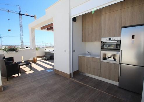 Sie haben die Wahl zwischen 2 verschiedenen Haus Modellen. Die Villen verfügen über 3 große Schlafzimmer mit Einbauschränken und 3 Bäder. Das Wohn- und Esszimmer ist groß und geräumig und es gibt eine moderne, offene Küche. Der beste Teil der Anlage ist das schöne Schwimmbad umgeben von einem Wasserfall und einer herrlichen Terrasse, ideal für ein Abendessen an einem heißen Sommerabend! Eine große Sonnenterrasse auf dem Dach ist in dem Laguna Azul Modell inbegriffen, und optional für das Laguna Rosa.