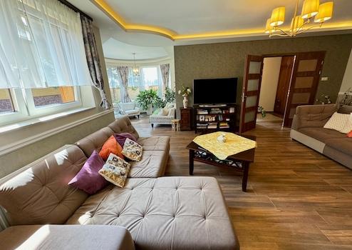 Die Möbel des Hauses, die im klassischen Stil eingerichtet sind und ewige Eleganz verleihen, wurden von einem Tischler nach individuellen Bedürfnissen angefertigt. Es gibt viele Einbaumöbel, die im Kaufpreis enthalten sind. Die Zimmer sind mit Laminatparkett ausgestattet, während die anderen Zimmer mit Keramikfliesen ausgestattet sind.