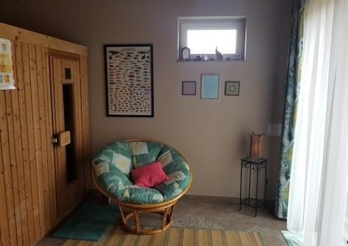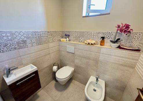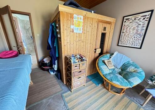 Aufteilung: Doppelgarage (36m2), großzügiger Flur mit Einbauschränken, riesiges Wohnzimmer, individuell gestalteter und gestalteter runder Wintergarten, Küche mit Esszimmer, Speisekammer. Von der Küche aus gelangen Sie auf die überdachte Terrasse (18 m²) mit einer schönen rustikalen Balkendecke. Wenn Sie ins Wohnzimmer zurückkehren, werden Sie von einem mit Lichtkanälen beleuchteten Durchgang begrüßt. Von hier aus gelangen Sie in das Badezimmer mit Badewanne und verglaster Duschkabine, Toilette, Garderobenraum, 3 Zimmern, Waschküche/Hauswirtschaftsraum und separater Toilette und Bidet. Jedes der Zimmer hat Zugang zur knapp 32 m2 großen Innenhofterrasse. Der 3. Raum dient derzeit als Wellnessraum und beherbergt eine 4-Personen-Sauna. Die 10,37 m2 große Terrasse vor dem Zimmer ist völlig privat und eignet sich perfekt für einen Whirlpool – die notwendigen Vorbereitungen wurden getroffen.
