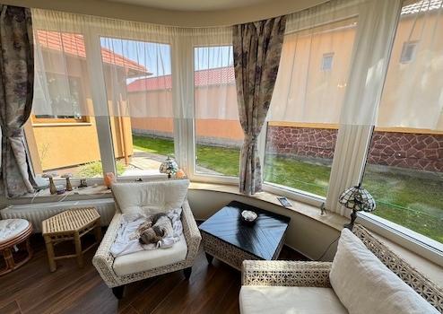 Das Außenmauerwerk wurde aus 30 cm N+F Leiertherm-Steinen mit 20 cm Wärmedämmung errichtet. Die inneren Trennwände bestehen aus schalldämmenden Leiertherm-Steinen. Aufgrund des einzigartigen Designs des Wintergartens wurde eine monolithische Holzplatte installiert. Das Dach ist mit terranischen Betonziegeln gedeckt. Bei den Türen und Fenstern handelt es sich um 3-schichtige 5-Kammer-Kunststofffenster mit hervorragender Wärme- und Schalldämmung, die in zwei Räumen mit elektrischen Jalousien und Moskitonetzen ausgestattet sind. Die äußeren und inneren Fensterbänke sowie das Waschbecken im Badezimmer bestehen aus gebranntem Kalkstein. Die Beheizung und Warmwasserversorgung des Einfamilienhauses erfolgt über einen energiesparenden Gas-Brennwertkessel, die Wärmeerzeuger sind eine Kombination aus Fußbodenheizung und Heizkörpern. Der jährliche Gasverbrauch des Hauses beträgt 1.300 m3, was durchschnittlich 12.000 HUF pro Monat bedeutet!!! Im Wohnzimmer sorgen ein riesiger Holzkamin und eine 5 kW Kühl-Heiz-