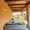 A hatalmas kert tökéletesen alkalmas kertészkedésre. A kerti szerszámok tárolására egy 12 m2 épített faház áll rendelkezésre. Az öntözés fúrt kútról megoldott.