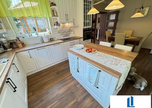 A konyhát a nappalitól egy duplaüveges ajtó választja el, mely természetesen kinyitható, így hatalmas teret kapunk. A konyhabútor minden nő álma, hiszen azon kívül, hogy gyönyörű, nagyon praktikus is. A konyhaszigetnek is köszönhetően rengeteg a tárolóhely benne. A konyhabútor gépesített: 90 cm-es indukciós főzőlappal, páraelszívóval, elektromos sütővel, mosogatógéppel, fagyasztós hűtőszekrénnyel felszerelt.