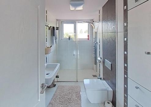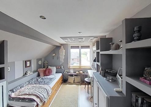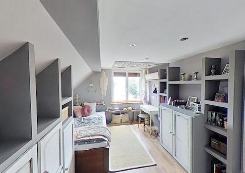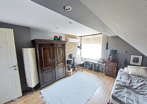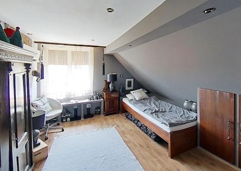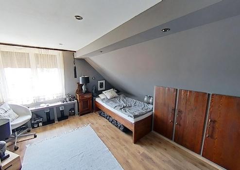 Az emeleten további 2 teljes értékű és egy fél hálószoba, fürdőszoba/wc, valamint egy gardrób szoba került kialakításra, picit több, mint 40 hasznos négyzetméteren.