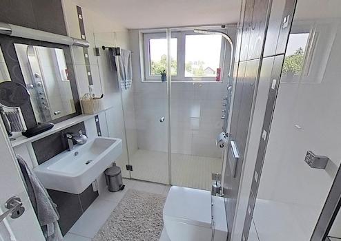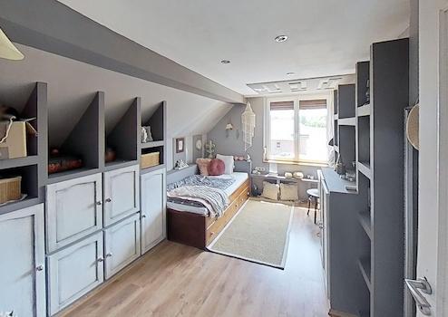 Im ersten Stock entstanden weitere 2 große und ein halbgroßes Schlafzimmer, ein Bad/WC und ein Garderobenraum auf etwas mehr als 40 Nutzquadratmetern.