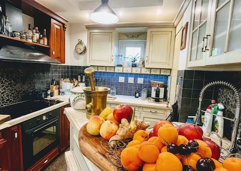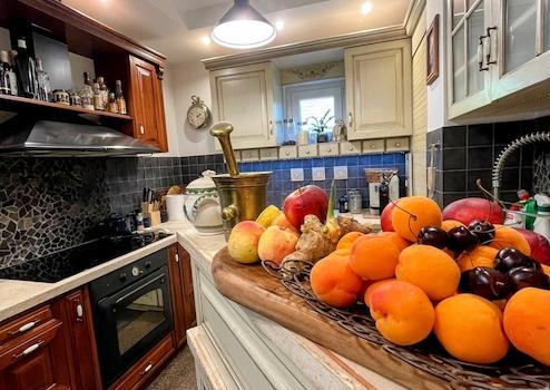A konyha egészen különleges elrendezésű, és a felhasznált anyagok is egyediek.