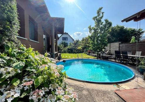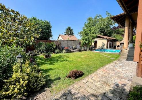 Die spürbare Nähe zur Donau und die ruhige Seitenstraße garantieren die ruhige, familiäre Atmosphäre dieses Hauses. Darüber hinaus sorgen die großen, hellen Räume, der wunderbar gepflegte Garten voller besonderer Pflanzen, die beiden großen Terrassen – die auch im Winter genutzt werden können – und der Swimmingpool mit Stromgenerator jederzeit für den Komfort der Eigentümer.