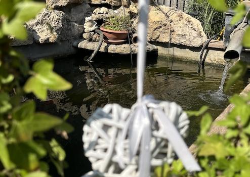 Die Pflanzen im Garten werden über die an den Bohrbrunnen angeschlossene Sprinkleranlage mit Wasser versorgt.