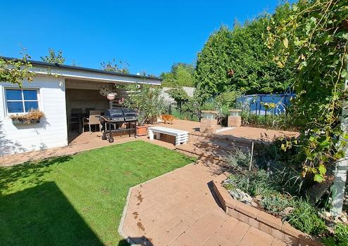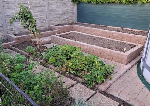 Der Garten ist komplett umzäunt, eingezäunt und begrünt, mit einem Gartenhahn ausgestattet und im hinteren Teil des Gartens wurden Hochbeete gebaut.