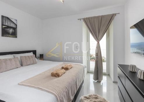 Luxuswohnung in Bregi, 1,2 km Luftlinie vom Meer entfernt, die sich über die gesamte Etage des Gebäudes erstreckt.