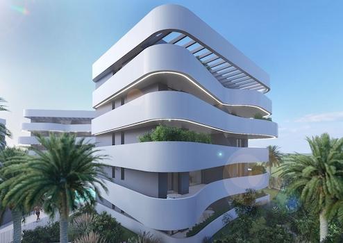 Appartements mit 2 Schlafzimmern, 2 Bädern, Klimaanlage und Einbauküchen mit Elektrogeräten in abgeschlossener Anlage mit Gemeinschaftspool und SPA