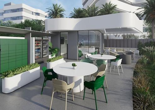 Zur Ausstattung der Wohnungen gehören unter anderem Aluminium- oder PVC-Fenster mit Doppelverglasung, Sicherheitstüren, Einbauschränke in den Schlafzimmern sowie moderne Einbauküchen mit Elektrogeräten. Die Gebäude verfügen über Fahrstühle und die Wohnanlage bietet Gemeinschaftspool, SPA, einen Co-Working-Raum, einen 24-Stunden-Kaffeeautomaten, eine Ladestation für Elektroautos und -roller, einen Kinderspielplatz und Tiefgaragenstellplätze.