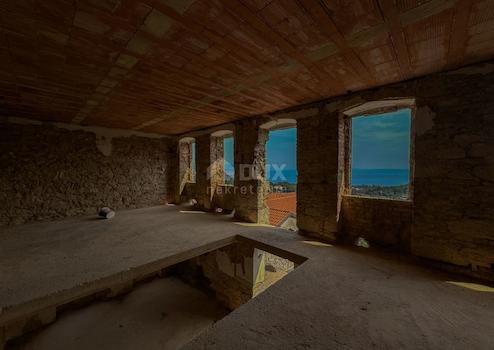 DUX bietet Ihnen eine außergewöhnliche Gelegenheit, ein authentisches Steinhaus an der Riviera von Opatija zu kaufen. Es handelt sich um eine historische Antiquität, deren Rekonstruktion bereits begonnen hat und die auf dem Weg zur vollständigen Restaurierung ist. Das Haus liegt in einer ruhigen Privatstraße oberhalb des Zentrums von Opatija, das nur sieben Autominuten entfernt ist. Dieses schöne Anwesen verfügt über einen weitläufigen Garten von 2000 m² und bietet die perfekte Gelegenheit, einen privaten Bereich mit Parkplatz, Garage, Swimmingpool, Grill und Liegewiese einzurichten. Von allen Punkten des Grundstücks sowie von jedem Fenster aus bietet sich ein wunderschöner, erhöhter Blick auf das Meer, der dieses Haus einzigartig macht. Das Haus besteht aus mehreren Ebenen: Im Untergeschoss befinden sich zwei größere Räume, die als Garage oder Lagerraum genutzt werden können, während im Erdgeschoss ein großer offener Raum von ca. 100 m² vorhanden ist. Eine neu gebaute Treppe führt in die erste Etage, wo sich ein weiterer großer offener Raum zur Dekoration befindet, mit noch besserem Blick auf das Meer und Zugang zum Balkon. Das Haus verfügt außerdem über eine ganze Etage im zweiten Obergeschoss, wo sich die Dachkonstruktion befindet, die eine zusätzliche Wohneinheit mit separatem Eingang darstellt und insgesamt ca. 300 m² Wohnfläche bietet. Diese Immobilie zeichnet sich durch eine Reihe von Merkmalen aus: ein komplett neues Dach und eine neue Dachkonstruktion, teilweise renovierte Außenwände unter Beibehaltung authentischer Steindetails und neue verstärkte Bodenplatten. Das Haus ist gesund, trocken und hat großes Potenzial, mit erhaltenen rustikalen Details und originaler Architektur, die es zu etwas Besonderem machen. Mit der nötigen Energie und Ressourcen wird dieses Haus unter dem neuen Eigentümer bald zu einem der schönsten Anwesen an der Riviera von Opatija werden. Dies ist eine hervorragende Gelegenheit für Investoren, egal ob Sie ein zukünftiges Privathaus am Meer oder ein Touristenmiethaus mit einer reichen Geschichte suchen.
