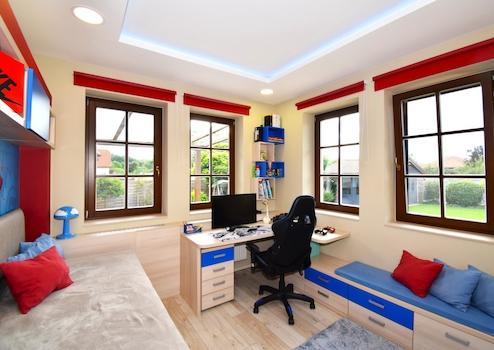 - mit zweischichtigen und dreischichtigen wärme- und schallgedämmten Holz- und Kunststoffprofilen, Jalousien (auch per Telefon bedienbar) und Insektennetzen.