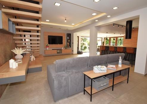 2007-ben költöztek be a ház lakói, viszont a végleges állapotát a közelmúltban érte el. Belsőépítész segítségével a folyamatos átalakítás eredményeként a terasz egybe épült a nappalival, egy újabb – nyitott – terasz épült a házhoz. A tetőtér beépítésre került, így a fenti részen egy többfunkciós teret kapott a ház, akár moziszobának, konditeremként, esetleg vendégek elszállásolására is kiválóan alkalmas lett. A földszinti rész is igazán grandiózus, különleges lépcsővel az emeletre, hatalmas terekkel, jól bútorozható szobákkal rendelkezik. Itt is teljes átépítés, megújulás volt az elmúlt évek során.