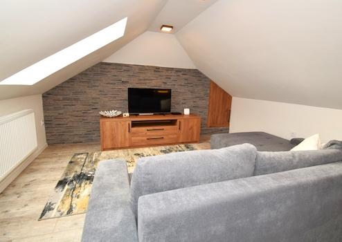 Moziszoba/vendég nappali, fürdőszoba, dolgozó sarok, gardrób.