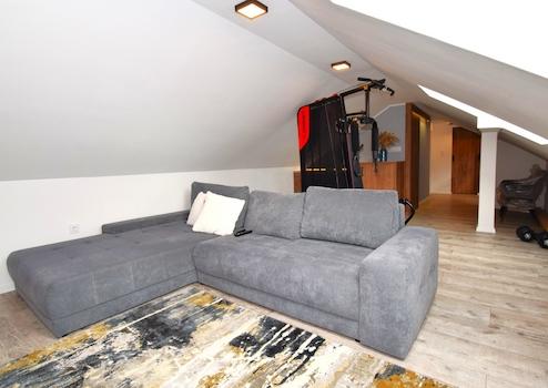 Kinoraum/Gästewohnzimmer, Badezimmer, Arbeitsecke, Kleiderschrank.