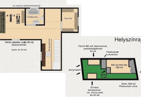 - Emelet: Bruttó: 60 m2 (nettó: 30 m2)