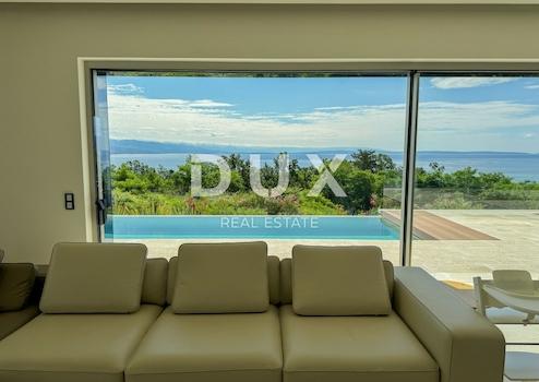 Eine exklusive Privatvilla befindet sich in unmittelbarer Nähe des Zentrums von Opatija. Dieses Beispiel zeigt einen Schritt in Richtung einer positiven Entwicklung des Ortes Opatija. Es zeigt auch eine Kombination aus Wissen, Ressourcen, Kreativität und dem Wunsch, etwas Besonderes zu erreichen. Schon die Annäherung an den Hof sorgt beim Öffnen der Haustür für einen großen Wow-Effekt. Auf drei Etagen wurde dieses Haus in einer privaten Qualitätsstraße mit einem 1000 m² großen Garten gebaut. Der Innenraum beginnt mit einer großen Garage im Keller, die mit einem unendlich verglasten Korridor verbunden ist und viele Kleiderschränke, Platz für persönliche Gegenstände, eine Waschküche und einen großen Spaßraum mit Fitnessraum, ein Kinderspielzimmer und eine finnische Sauna verbindet. Die Treppe führt in das offene Erdgeschoss, wo sich einer der größten offenen Wohnbereiche in der Gegend von Opatija befindet – unglaubliche 95 m2 offener Raum, wo sich neben dem Wohnzimmer auch eine Kücheninsel befindet und ein Esszimmer. Der Raum ist natürlich mit einem Schlafzimmer mit eigenem Bad, WC, Flur, Abstellraum und einem 13 m² großen, nach Süden ausgerichteten Büro verbunden. Ein wichtiges Detail der Küche sind die Elemente, die sich zum Meer hin drehen und einen unglaublichen Blick auf die gesamte Kvarner-Bucht bieten. Die Treppe führt in die erste Etage, wo sich 3 Schlafzimmer und zwei tolle Badezimmer befinden, die jeweils über eine große, nach Süden ausgerichtete Glaswand mit Zugang zur 23 Meter breiten Außenterrasse verfügen. Das Hauptschlafzimmer ist 26m2 groß und verfügt über ein eigenes Badezimmer, das ebenfalls komplett aus Glas besteht und ein besonderes Erlebnis beim Duschen mit Blick auf die Inseln und das blaue Meer bietet. Die Zweckmäßigkeit der anderen Schlafzimmer verbindet die Nutzung der Terrasse und des großen Badezimmers. (Die Größe des 3. Schlafzimmers beträgt 17 m² und des vierten 20 m².) Dieses moderne Haus verfügt über eine Terrasse von insgesamt 380 m². Ein 45 m² großer Infinity-Pool mit Tauchbecken und exotischer Vegetation in einem privaten Garten machen dieses Stück Platz an der Riviera von Opatija einzigartig. Ein interessantes Detail des Innenraums sind die eingebauten Atrien, externe vergrabene Räume im „vergrabenen“ Keller, die mit dem Fitness- und Saunabereich kommunizieren. Das offene Wohnzimmer ist groß genug, um Ihren Aufenthalt im Zentrum von Opatija einzigartig zu machen. Dafür ist neben den hohen Decken auch der Panoramablick aus dem Wohnzimmer verantwortlich, der einfach kein Ende hat. Zusätzliche wichtige Informationen: - Smart Home Control4-System (Heizung - Kühlung und Gartenbeleuchtung) - FLOSS-Innenbeleuchtung und vollständig beleuchteter Garten - zwei Daikin VRV-Wärmepumpen zum Heizen und Kühlen sowie Fußbodenheizung im gesamten Innenraum - der Außenpool verfügt über eine spezielle Wärmepumpe – das gesamte Haus ist mit Stein verkleidet, maßgefertigte Einbauschränke, hochwertige Möbel aus Italien – Videoüberwachung und Alarmanlage – Sanitärkeramik Flaminia und Globo sowie Marazzi-Keramik – Dreischichtparkett, Außenschreinereiarbeiten Alumil Supreme S650 (Eisenvorhänge) - Glaswände mit einer Höhe von bis zu 14 Metern - einbruchhemmendes Türschwenksystem und Öffnung über biometrischen Fingerabdruckleser. Für die Dekoration wurden Materialien höchster Qualität verwendet, - sehr angenehmes Parkettmotiv, Haushaltsgeräte und Sanitärartikel bekannter Marken , maßgeschneiderte Küche. Bewässerung, Smart-Home-Technologie, speziell konzipierte Beleuchtung. Dieses Anwesen liegt 430 Meter Luftlinie vom Meer entfernt, bzw. 950 Meter mit dem Auto (1 Minute). Man könnte durchaus sagen, dass es sich um eines der hochwertigsten Objekte dieser Kategorie mit einem einzigartigen Blick auf das Meer oberhalb des Zentrums von Opatija handelt.