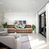 Das Erdgeschoss besteht aus einem Esszimmer mit Küche, einem Wohnzimmer und einer Gästetoilette, während die erste Etage aus zwei Schlafzimmern mit jeweils eigenem Bad und Zugang zu einem eigenen Balkon besteht.