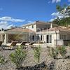 Auf der mit Steinen gepflasterten Terrasse der Villa befindet sich ein wunderschöner, beheizter Swimmingpool von 35 m2 mit Wasserelektrolyse, dann eine Hydromassagewanne (Jacuzzi) für 6 Personen und ein Steingrill im Freien.