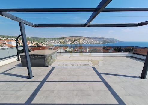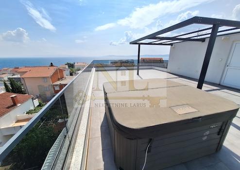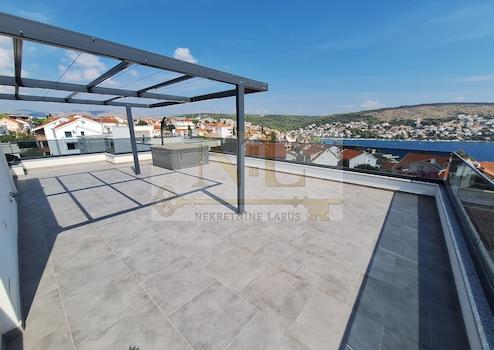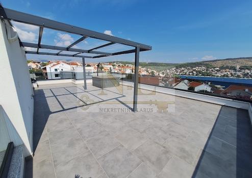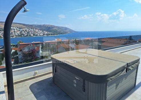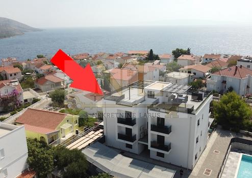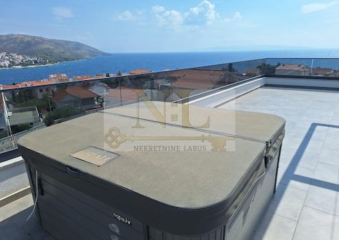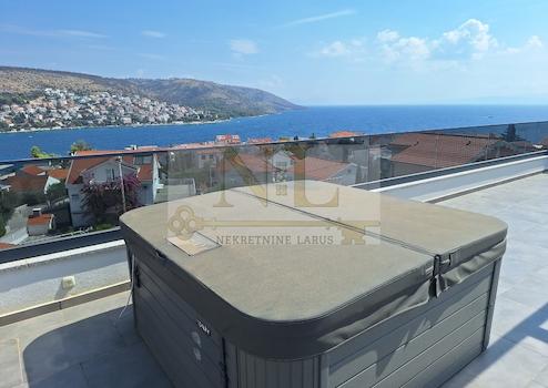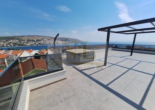 Wir verkaufen eine Penthouse-Wohnung mit Dachterrasse im zweiten Stock eines neuen Gebäudes in Okrug Gornji, in ausgezeichneter Lage, 150 Meter vom Meer und dem Strand entfernt.