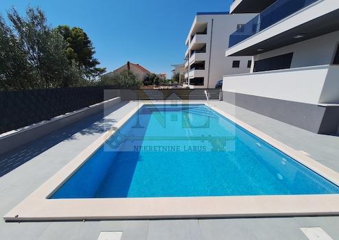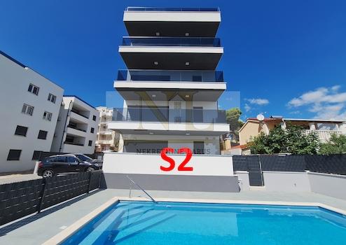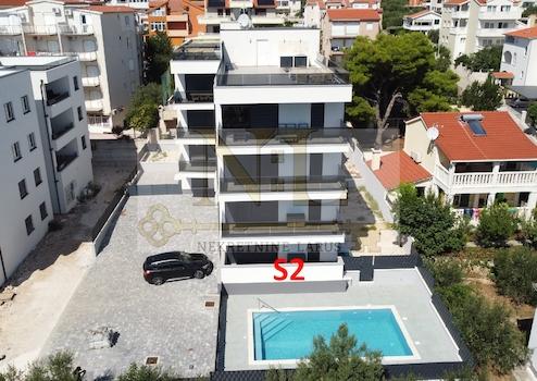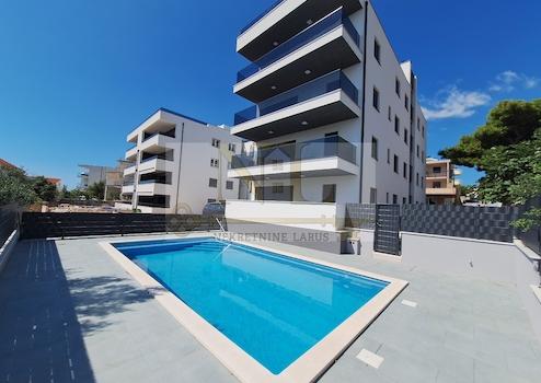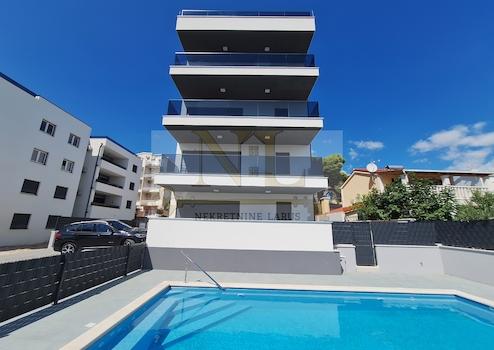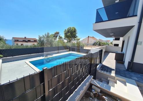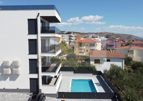 Das Gebäude befindet sich auf der Südseite der Insel Čiovo, Okrug Gornji, mit freiem Panoramablick auf die mitteldalmatinischen Inseln, ganztägiger Sonne, großem Swimmingpool und Aufzug.