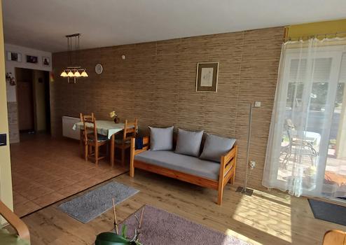 Zu verkaufen – Im Herzen von Kozármisleny, in einer grünen Gegend, wurde 2010 dieses einstöckige, 105 m² große Einfamilienhaus auf einem 300 m² großen Grundstück gebaut. Die Aufteilung des Hauses ist wie folgt: Wohnzimmer mit amerikanischer Küche, 2 Schlafzimmer + Arbeitszimmer, Speisekammer, Badezimmer mit Toilette und einer weiteren Toilette, Waschküche, Garage und ca. 15 qm große Terrasse. Nahe; Bushaltestelle, Geschäfte, Restaurant, See usw. Das Grundstück ist frei von Belastungen.