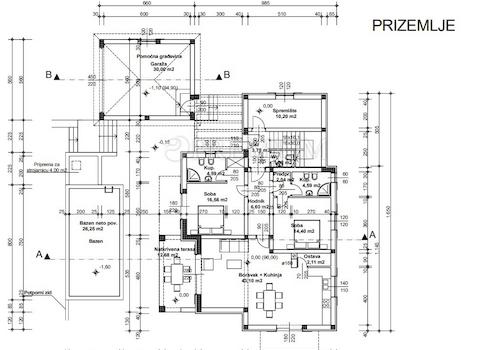 Baugrundstück mit einer Fläche von 1144 m2, mit gültiger Baugenehmigung für den Abriss des bestehenden Hauses und für den Bau eines Einfamilienhauses mit zwei Wohneinheiten, Bruttofläche 295 m2, mit einer Garage von 37 m2 und einem Swimmingpool, Abmessungen 4 m x 8 m.