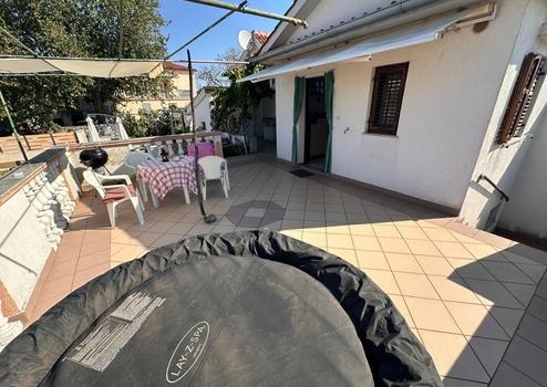 Wir verkaufen eine Doppelhaushälfte im Herzen der Insel Krk. Es besteht aus dem Erdgeschoss und dem ersten Stock. Im Erdgeschoss gibt es eine separate Wohnung (1 Schlafzimmer + Badezimmer) und eine Taverne. Die erste Etage besteht aus drei Schlafzimmern, einem Wohnzimmer, einer Küche und einem Esszimmer, einem Badezimmer mit Toilette und einem Dachboden mit einem zusätzlichen Zimmer. Zur Wohnung gehört außerdem eine große Terrasse mit Blick ins Grüne und in die Umgebung. Das Haus verfügt außerdem über einen ca. 400 m² großen eigenen Garten und Platz für mehrere Parkplätze. Das Gebäude muss angepasst und renoviert werden. Das Gebäude hat Potenzial und kann in ein Ferienhaus oder mehrere Wohnungen umgewandelt werden. Ausgezeichnetes Anwesen in ruhiger und ruhiger Lage in einer Touristenstadt.
